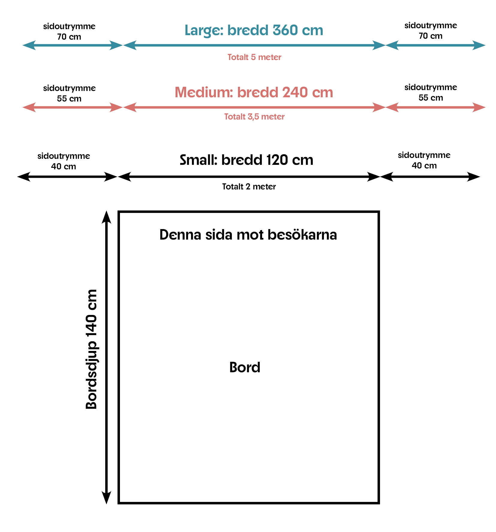Våra bordshyror är mellan 125-500kr beroende på storlek och om du är kårmedlem/pensionär eller övrig.